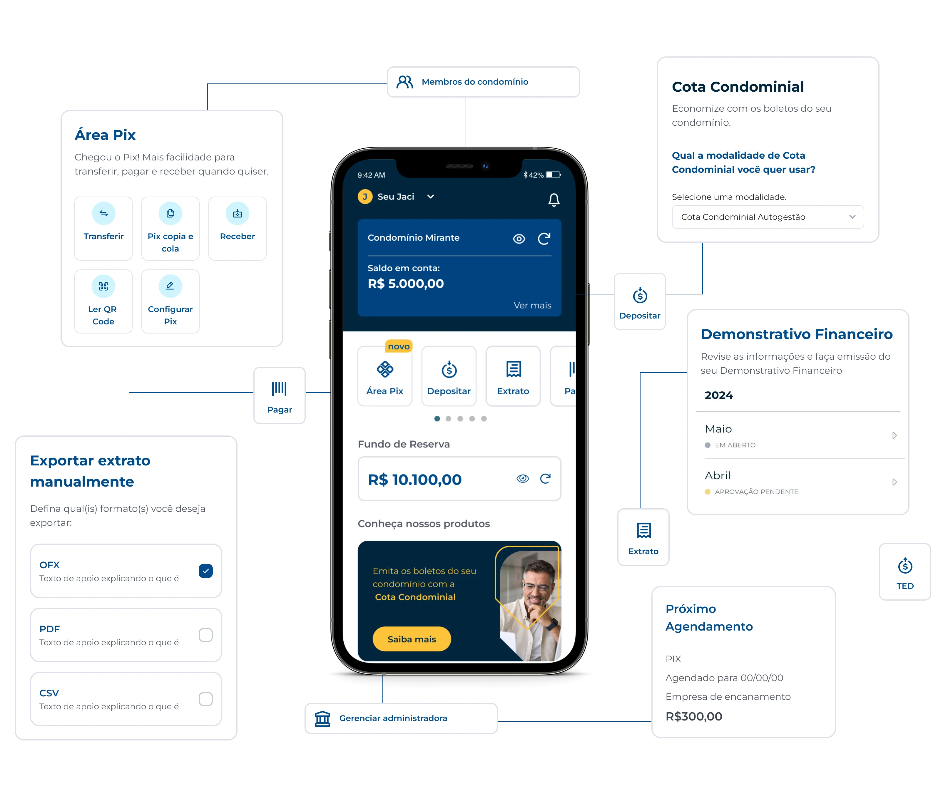 Organize as finanças do condomínio com transparência. Pague contas, faça transferências e tenha o Fundo de Reserva com a melhor rentabilidade.